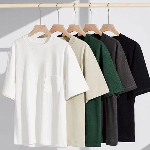クラシックネックメンズTシャツ100% コットン竹繊維カジュアルルースフィット300グラムニット生地ロングシルクスクリーン印刷ソリッド